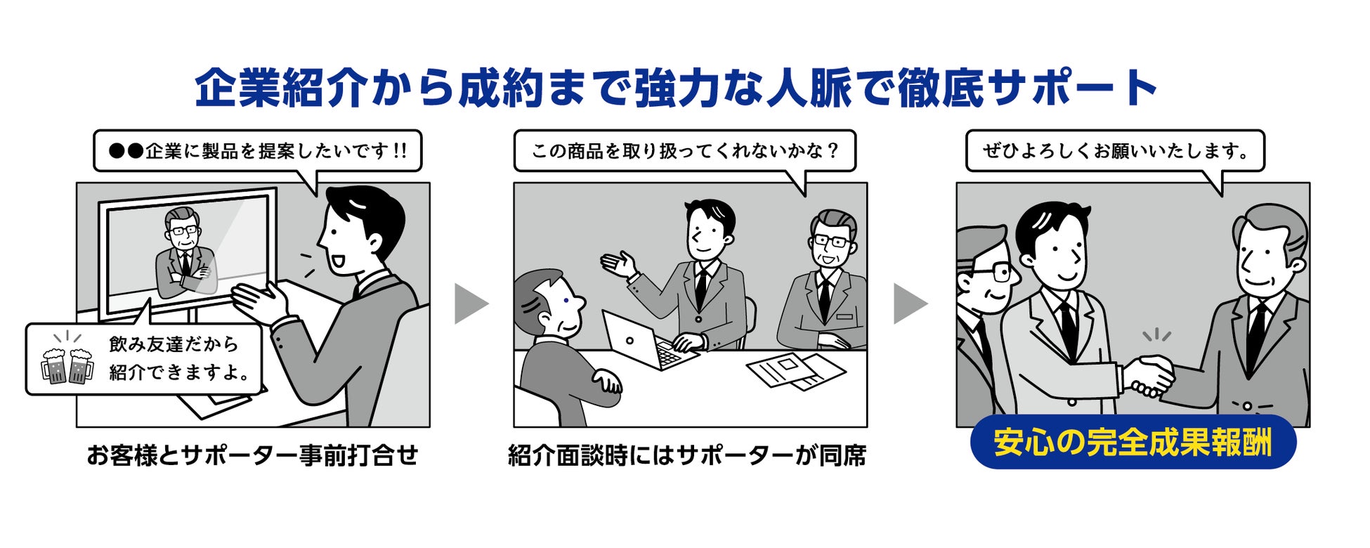商談同席で成約までフォローし、大手企業との商談を強力な人脈でサポートする、貴社の新規開拓営業のバックアップを強化したプランも加わりました。