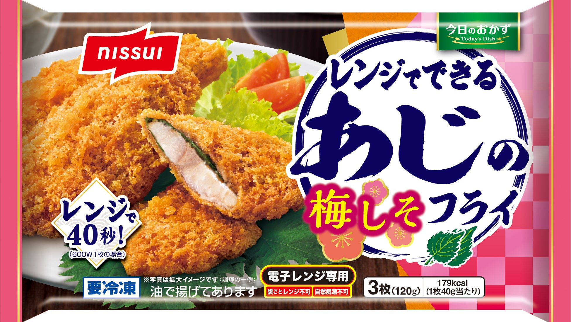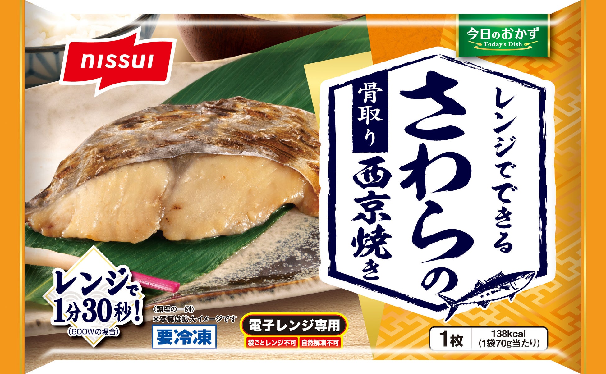 株式会社ニッスイ(代表取締役 社長執行役員 田中 輝、東京都港区)は、ご家庭の食卓に向けた惣菜を揃えた「今日のおかず」シリーズ(家庭用冷凍食品)の新商品として、「今日のおかず レンジでできる さばの塩焼き」「同 さわらの西京焼き」「同 あじの梅しそフライ」の3品を3月1日に発売します。人気の“焼き魚”や“魚のフライ”が、電子レンジであたためるだけで手軽に召しあがれる商品です。