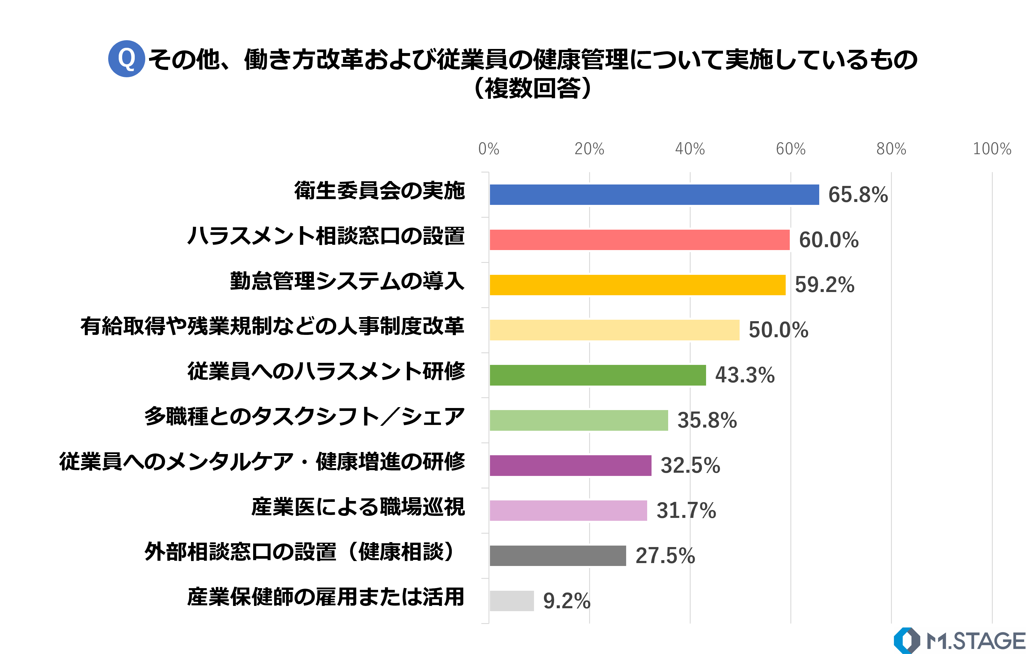 働き方改革および健康管理の取り組みが進むも、法定業務で実施が出来ていないものも存在