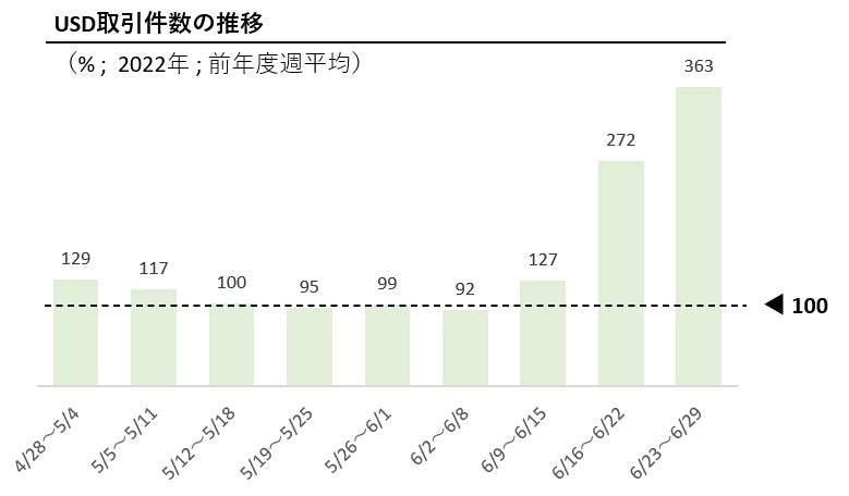 記録的な円安が続く中、気軽に利用でき、幅広い外貨を取り扱えるサービスとして注目され、米ドルを中心に利用件数が大きく増加していました。