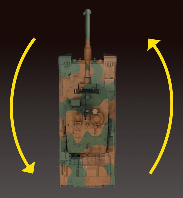 砲塔は、スムーズに360度旋回。コントローラー操作で任意の位置で停止できる。