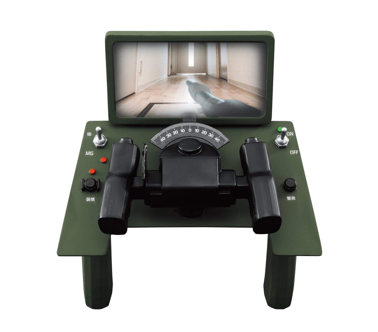 砲手ハンドルをモチーフにした専用コントローラーで90式戦車を自由自在に操作可能。走行中の前方を捉える小型カメラを内蔵しており、コントローラーのモニターで映像を見ることができます。