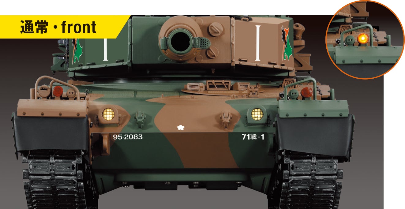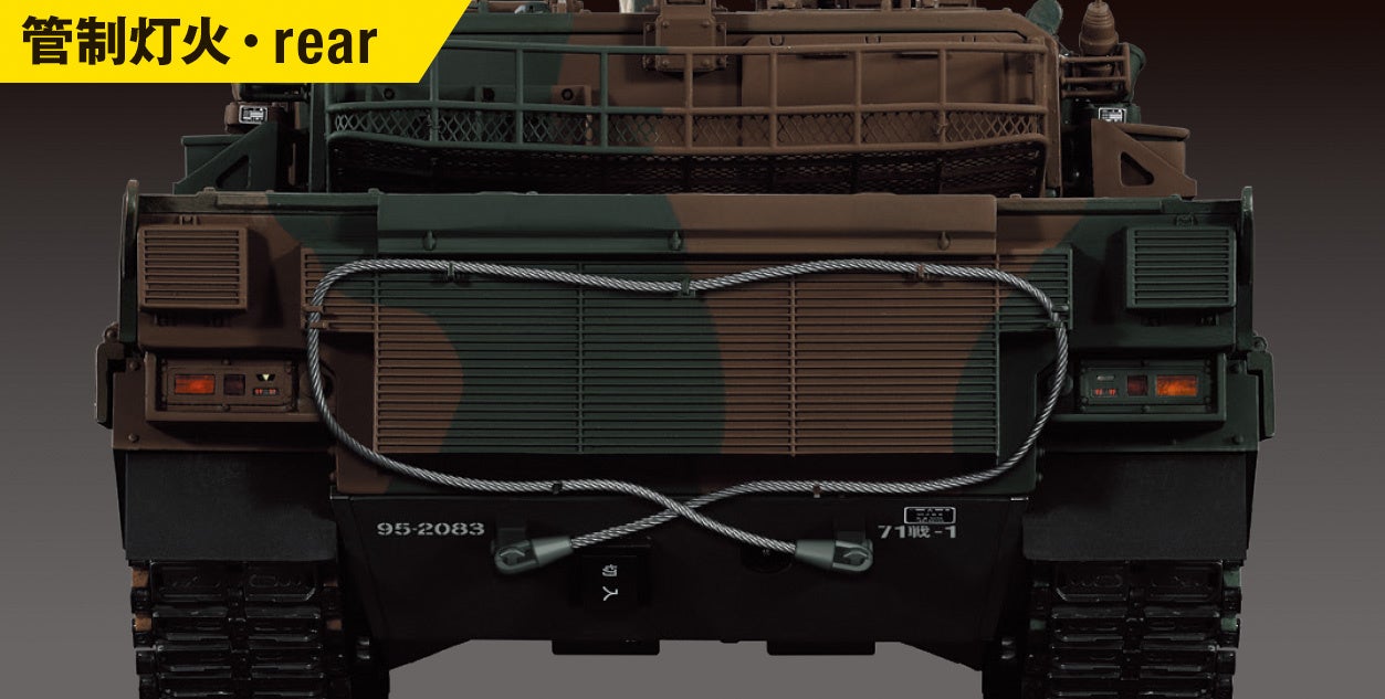 綿密な実車取材により再現されたこだわりのディテール。素材、設計、部隊マークに至るまで忠実に再現した迫力の大型スケールモデルは、専用コントローラーで自由自在に操作が可能。重厚なエンジン音と共に実車さながらの走行を楽しむことが出来ます。