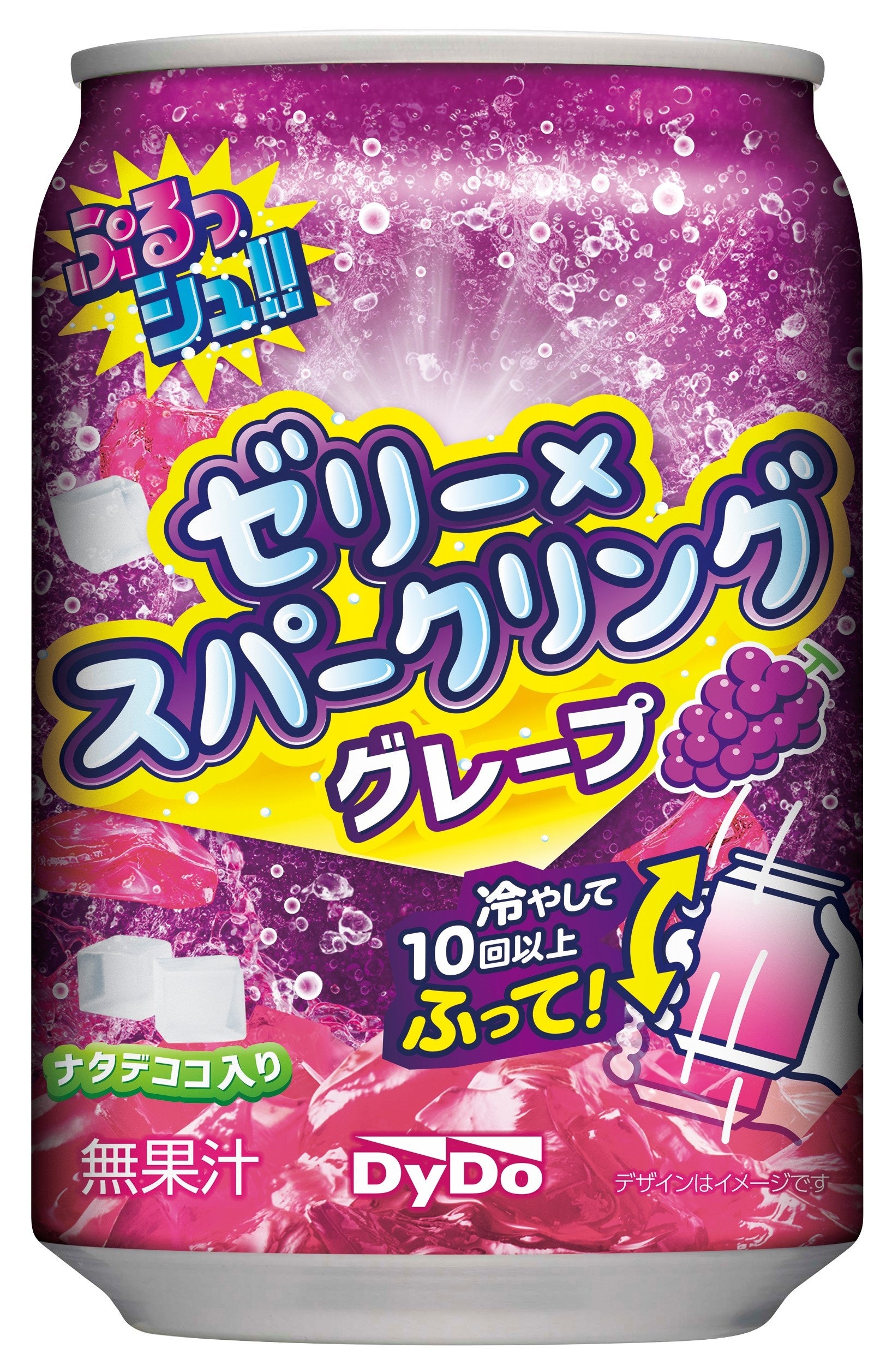 「ぷるっシュ!!」ブランドからリニューアルした「ぷるっシュ!!ゼリー×スパークリング グレープ」は、ゼリー×炭酸×ナタデココという独自の組み合わせで小腹満たしにもなる満足感と、“振って飲める炭酸”で、わくわく感が楽しめるゼリー炭酸飲料です。