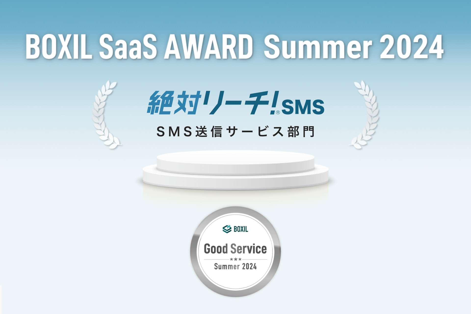 SMS送受信サービス「絶対リーチ!SMS」が「BOXIL SaaS AWARD Summer 2024」SMS送信サービス部門で「Good Service」に選出