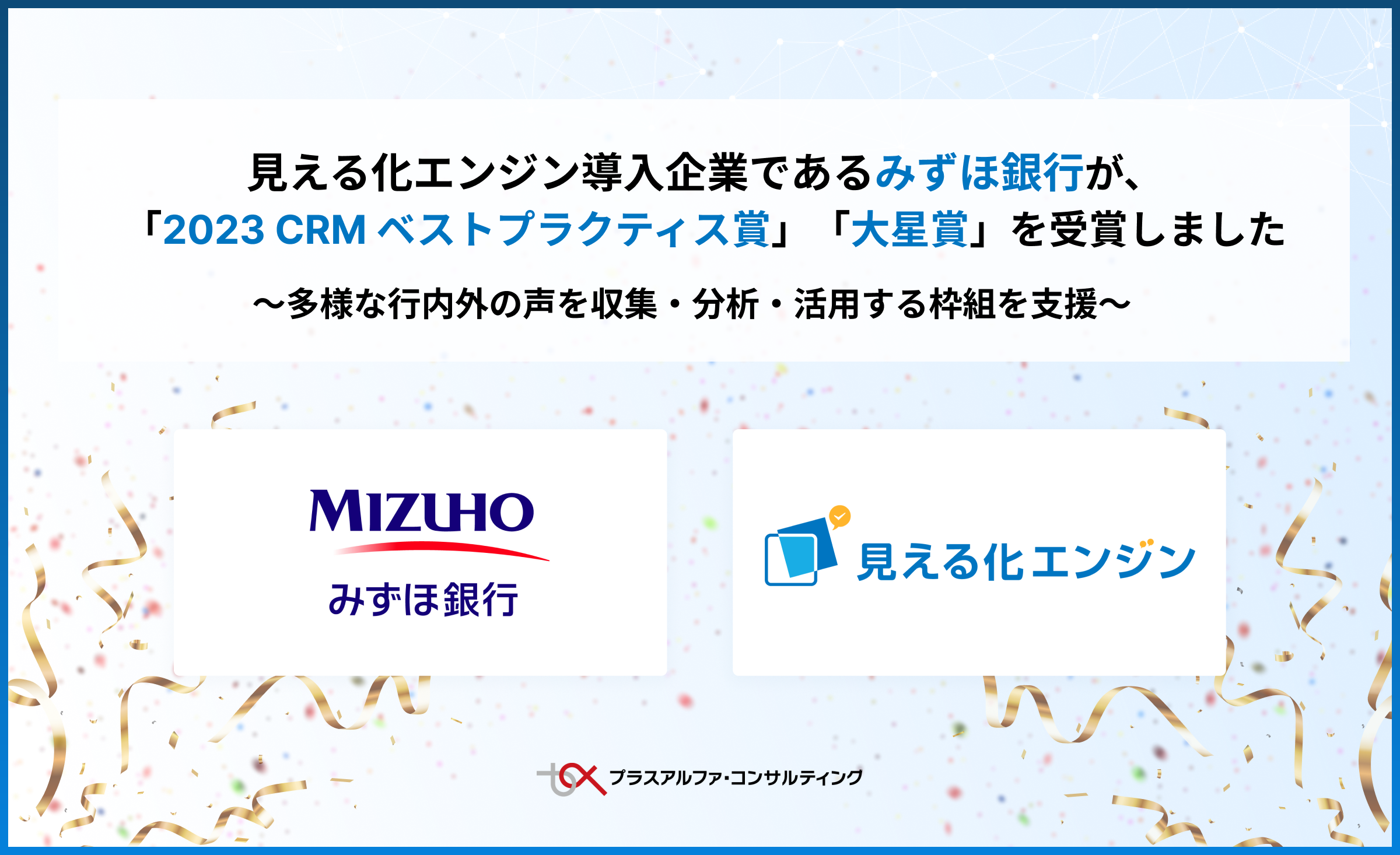 見える化エンジン導入企業であるみずほ銀行が、「2023 CRM ベストプラクティス賞」「大星賞」を受賞しました
