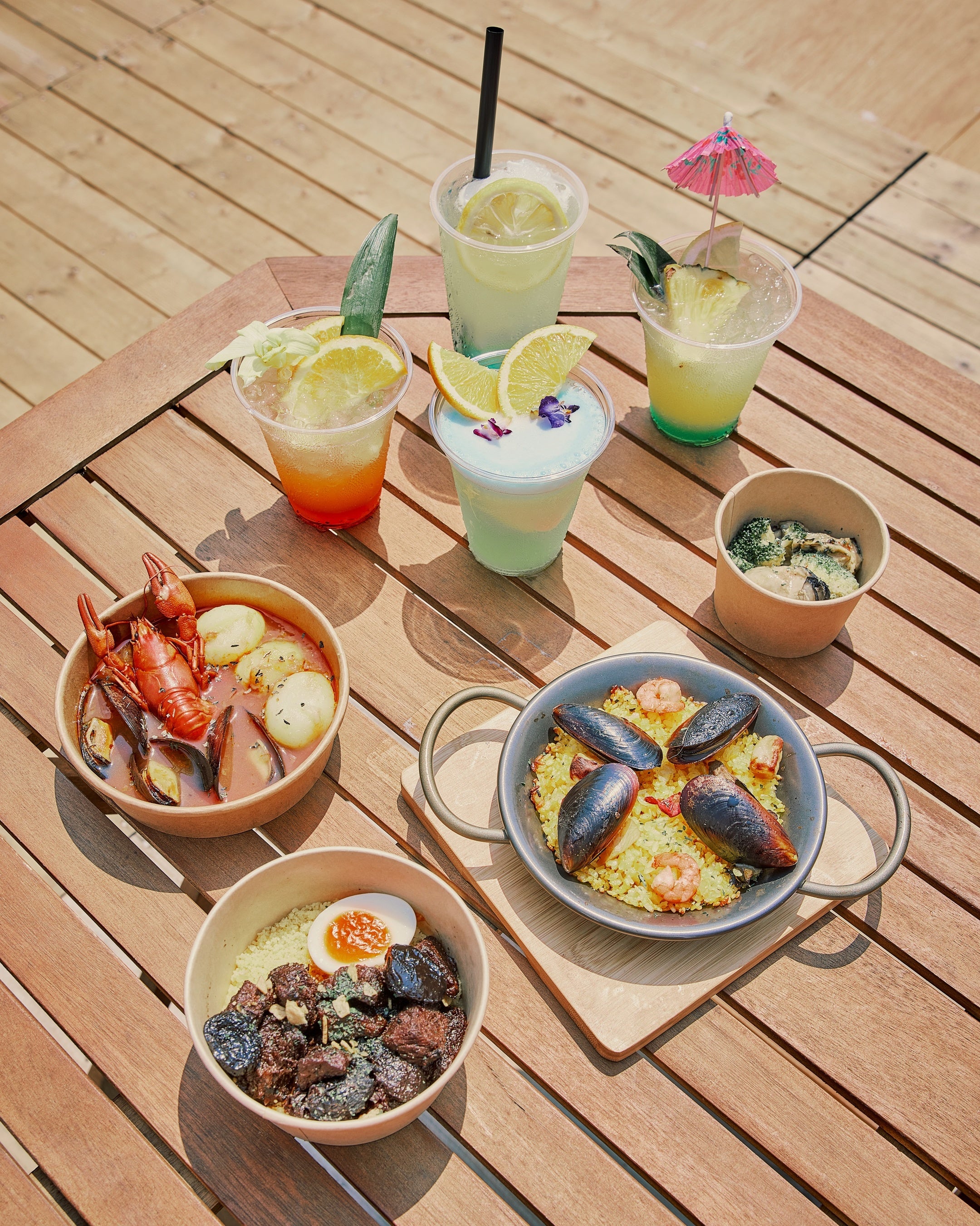 内装やメニューはイビサ島に実在するカフェバーをイメージ!「イビサ・テラス」内の「CAFE&BAR SALUD」にて、リゾート気分が味わえる涼しげなフローズンカクテルや、さっぱりとしたフルーツを添えたフレッシュなカクテル等、イビサ島のナイトカルチャーにもマッチする華やかなドリンクを心地よい風を感じながらお楽しみいただけます。ゆったりとくつろげるソファ席を備えるため、横浜観光の休憩スポットとしてもおすすめです。