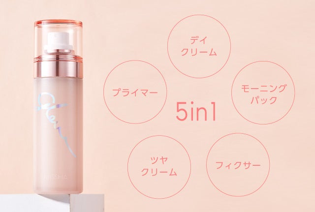 デイクリーム+モーニングパック+プライマー+ツヤクリーム+フィクサー機能を叶える5in1ミスト。化粧水なのに、クリームで仕上げたような保湿力。サッと顔に吹きかけるだけで、瞬間グロウメイクベースの完成。