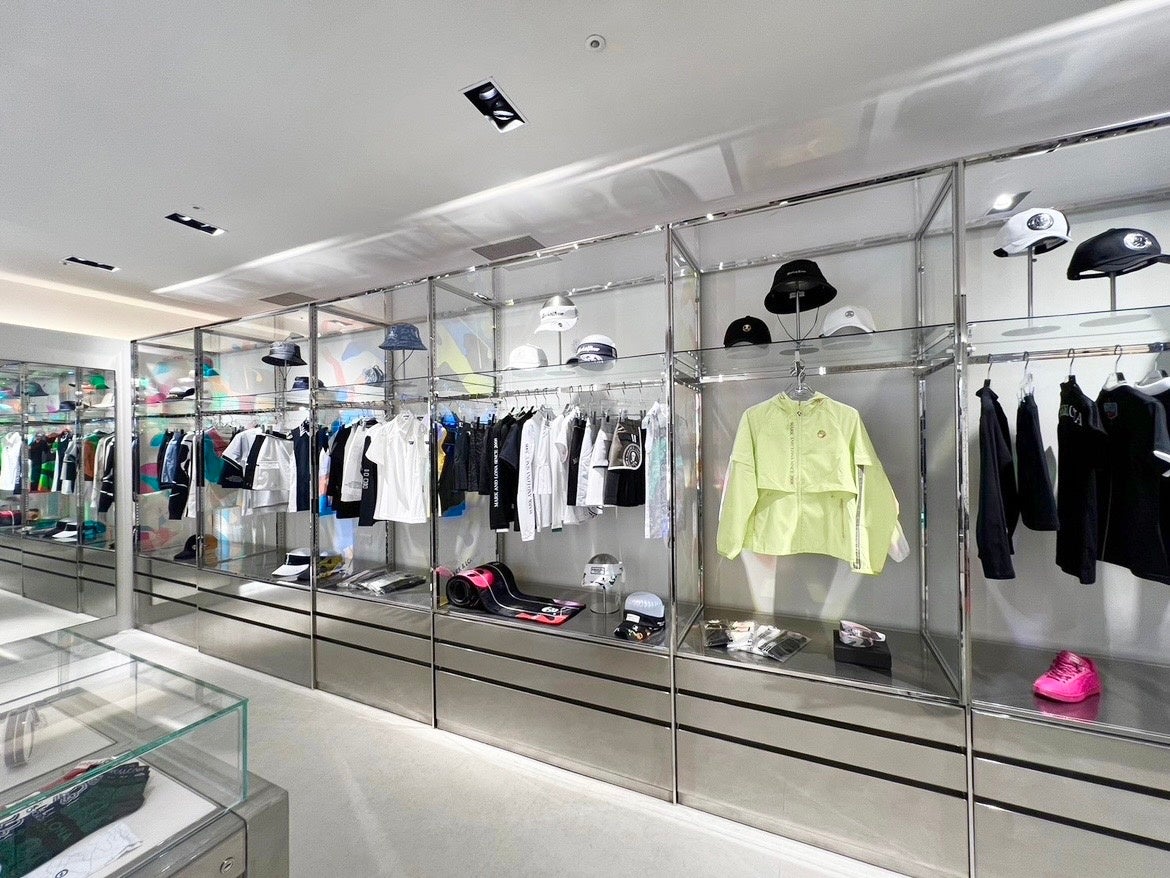 新光三越百貨店 台中中港店は、台湾三大都市のひとつである台中市に位置する複合商業施設です。MARK & LONA 台中中港店は、台湾で2店舗目となるフラッグシップストアとなり、50平米のスペースを有し、ホワイトとグレーを基調とした洗練されたストアデザインを採用しています。この店舗は、従来のゴルフアパレルショップとは異なり、高級感あふれる上質な空間を演出しています。