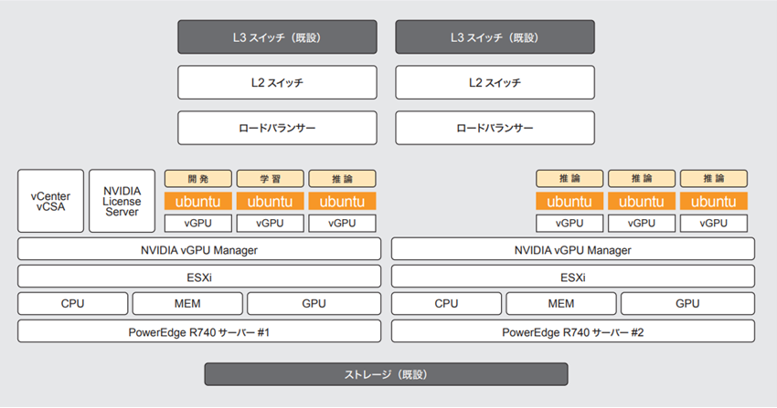 以前はパブリッククラウドで運用していた「安全品質AIソリューション」でしたが、写真判定のリアルタイム化の要件を満たす必要があり、また、日々変化するAIモデルに対して、GPU割り当ての変更を柔軟に行えるという利点も鑑み、プライベートクラウド基盤での運用に変更することになりました。集約効率を高めるため、GPUパススルー方式ではなく、仮想GPU方式(NVIDIA vGPU)を採用したいと考えている中、デル・テクノロジーズのNVIDIA GPU搭載の「PowerEge R740」サーバーを基盤にした提案が合致し、かつ、vGPUプロファイルの設定などについてデル・テクノロジーズの手厚いサポートが採用の決め手になりました。