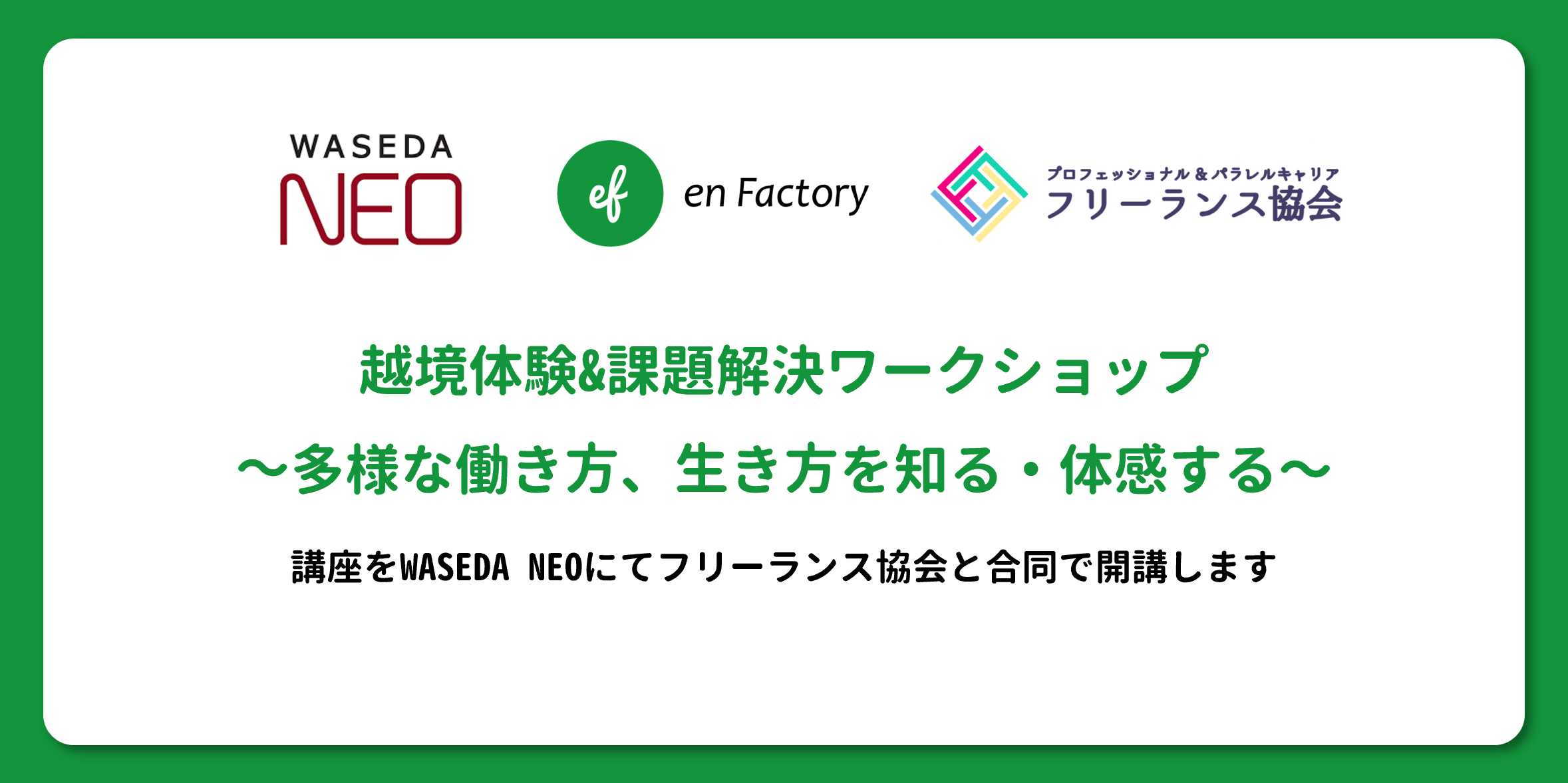 WASEDA NEOにて「越境体験&課題解決ワークショップ~多様な働き方、生き方を知る・体感する〜」講座をフリーランス協会と合同で開講します