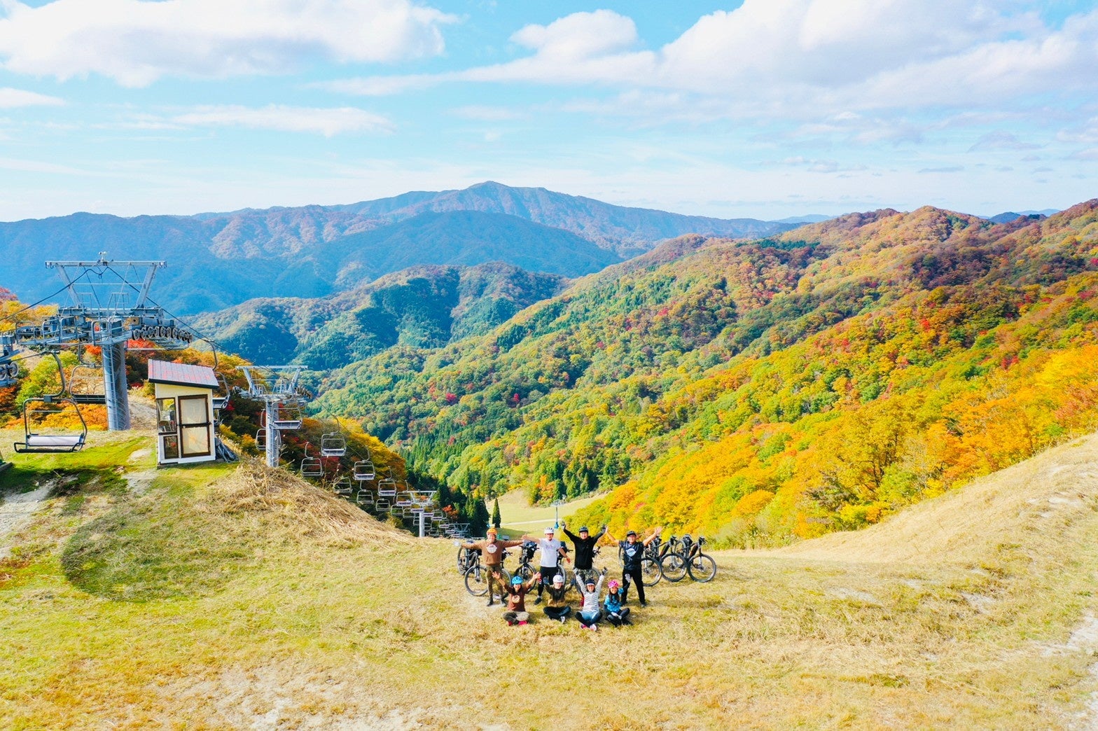 テーマは“大人の夏休み”!E-MTBで遊ぶ 夏のゲレンデライド。グランスノー奥伊吹の夏のスキーゲレンデをE-Bike(スポーツタイプの電動アシスト自転車)で頂上を目指します。まるで「プライベートゲレンデ」のように大自然を満喫出来ます。他にも林道や古民家の風景を楽しんだりと非日常を味わえます。