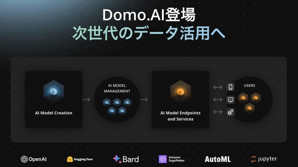 Domo.AIは、ウェブベースのインタラクティブな開発環境であるJupyter WorkspaceやAutoML(自動機械学習)など、Domoの業界トップレベルの機械学習(ML)およびデータサイエンス(DS)の主要機能の上に構築されています。今夏、新たに発表されたDomoのAIフレームワークであるAIサービスレイヤーは、現在では一般提供(GA)されています。ユーザー自らがAIを接続・選択・構築・管理できる、柔軟性のあるAIソリューションに対する需要は非常に高く、米国ではすでに多くのDomoユーザーがDomo.AIを利用し、AIを活用したデータ体験を推進しています。