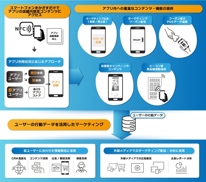 - スマートフォンをかざすだけで、アプリ利用を促進