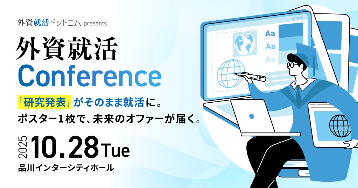 初開催、理系大学院生の研究成果を企業がスカウトする学会形式・逆求人イベント「外資就活Conference」を10月28日に開催