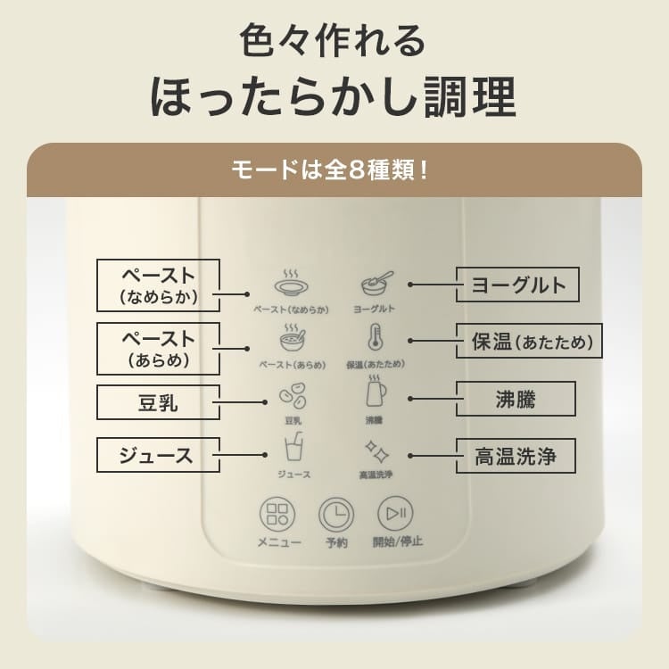 早速ご購入のお客様から「以前から温める機能付きのミキサーを探してましたが、今回1万円以下で購入できることを知り即決しました。かぼちゃのスープ、バナナシェイク、さつまいもポタージュと使用してまだ3回ほどですが、簡単に作れるのに美味しく飲んでくれて自分も大変満足してます。結果、料理の幅が広がって購入して良かったです」との嬉しいお声もいただいております。