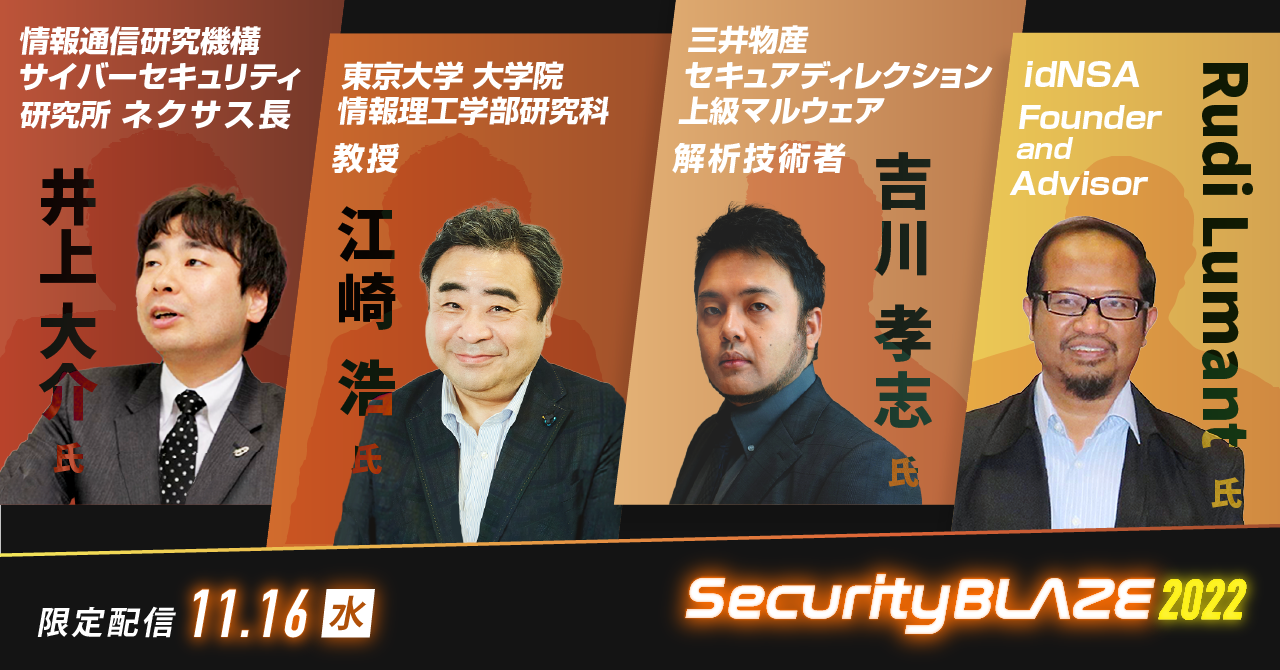 「Security BLAZE2022」は、日本を代表するサイバーセキュリティの専門家や企業にお集まりいただき、サイバーセキュリティの最新動向や脅威への対策などを中心にお話いただく、日本最大級のオンラインセキュリティカンファレンスです。