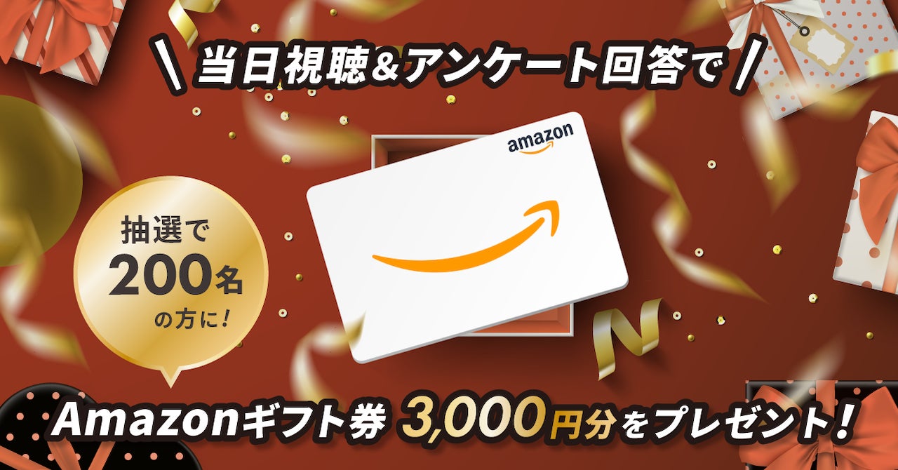 - Amazonギフト券 3,000円分プレゼントキャンペーン実施中