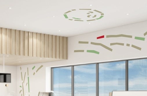 さらに、地域の方々にJINSをより身近な存在と感じていただきたいとの思いから、下がり天井や店内のボックス型のスツールには、地元富士市原産の富士檜(ひのき)を採用。また、富士市は富士山麓からの豊富な湧き水に恵まれ、「紙のまち」としても知られることに着目し、商品棚の引き出しなどには、従来の木材ではなくコットンパルプや精製木材パルプでつくられた強化紙を使用しています。