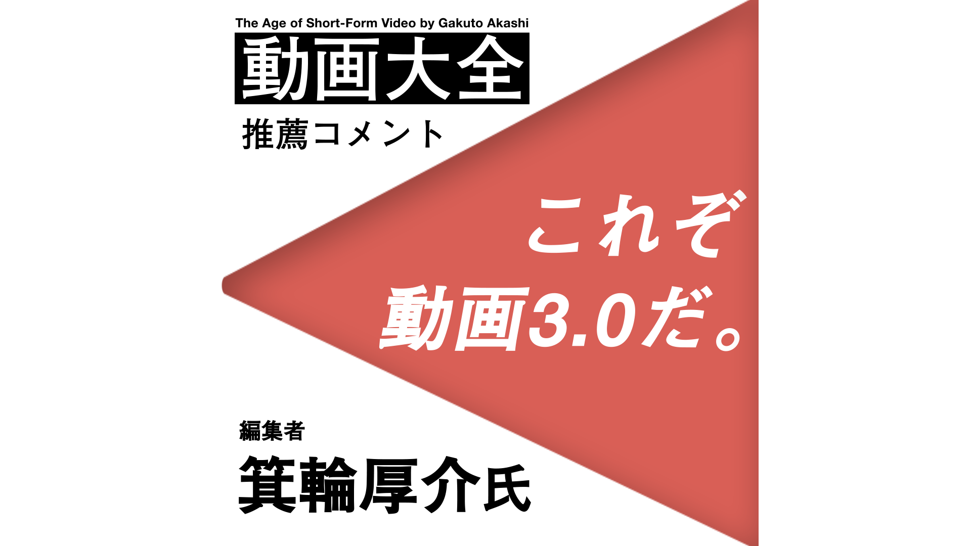 発売に先駆けて、本書の執筆プロセスを振り返るトークセッションを2023年3月中旬に開催いたします。イベントは本書の赤字入り原稿を投影しながら、三浦崇宏氏(The Breakthrough Company GO 代表 PR /クリエイティブディレクター)と対話。明石ガクトの思考プロセスを解き明かすトークセッションとなる予定です。『動画大全』の内容をより深く理解できる内容となっております。