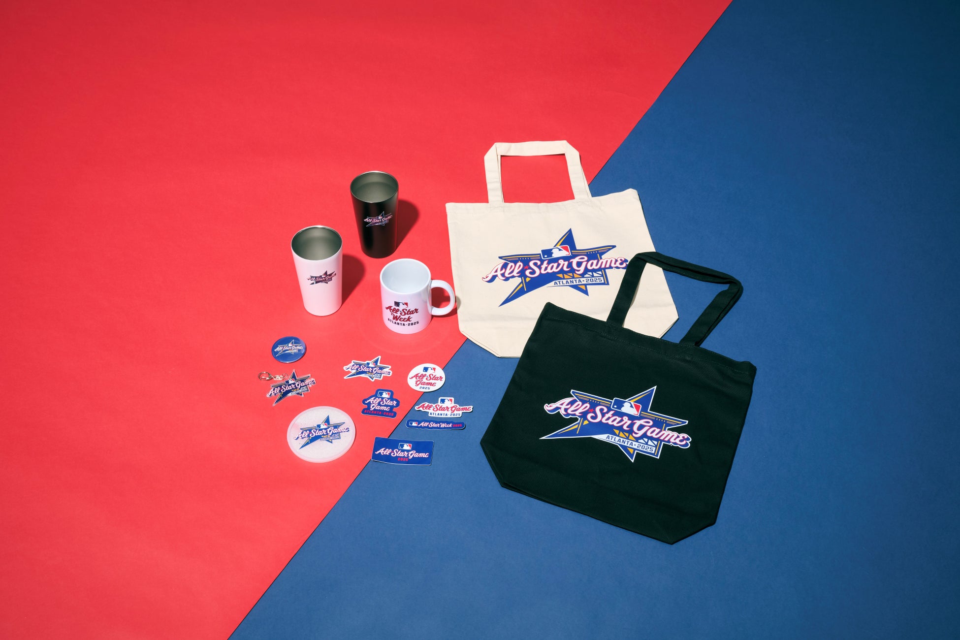 新商品には、今年のオールスターゲーム開催地であるアトランタ・トゥルーイスト・パークを囲むスポーツ&エンターテインメント複合施設「ザ・バッテリー・アトランタ」の建築デザインをモチーフにしたロゴ入りのマグカップやトートバッグをはじめ、夏にぴったりなTシャツなど全12種類をラインナップ。さらに、ロサンゼルス・ドジャース、ニューヨーク・ヤンキースなどのMLBチームTシャツの取り扱いも同時に開始いたします。