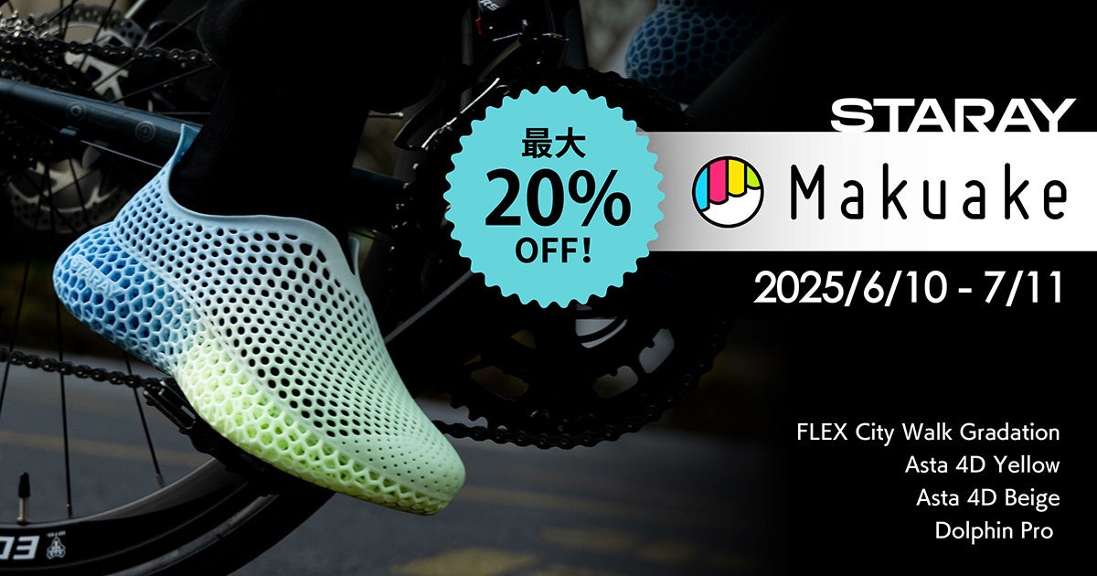 APPLE TREE株式会社は、3Dプリント技術を活用したシューズ「STARAY」の応援購入プロジェクトを、クラウドファンディングサービス「Makuake」にて実施しています。
