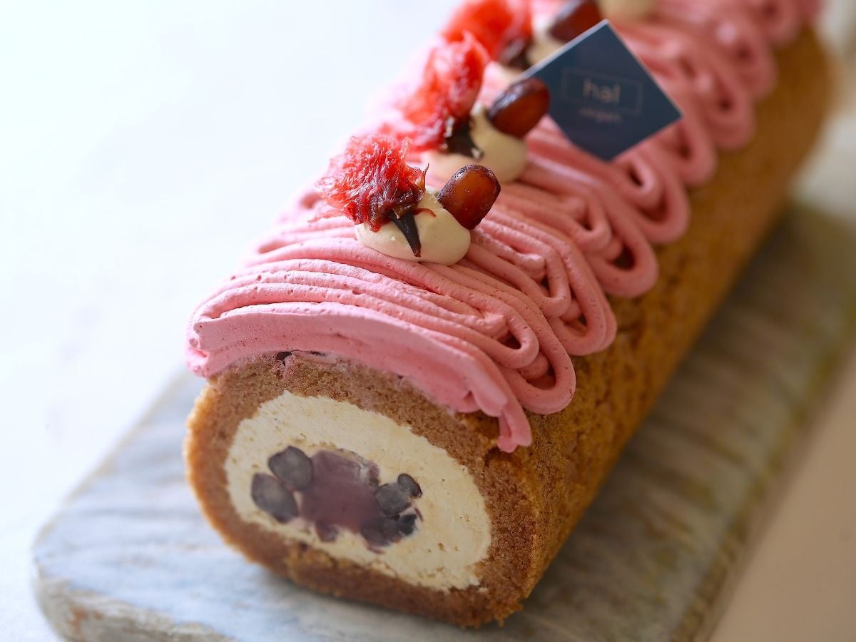 「桜のモンブランロール」は、しっとりとした口触りのよい桜の風味の卵と、乳製品や小麦不使用の米粉生地で作ったロール生地の中心に、桜餡と鹿の子豆をhal okadaオリジナルのsoyホイップクリームで包み込みました。さらに、仕上げに桜風味のシロップとあわせたsoyホイップクリームをあしらい、見た目は洋風でありながら、食べると和の風味を感じる一品です。