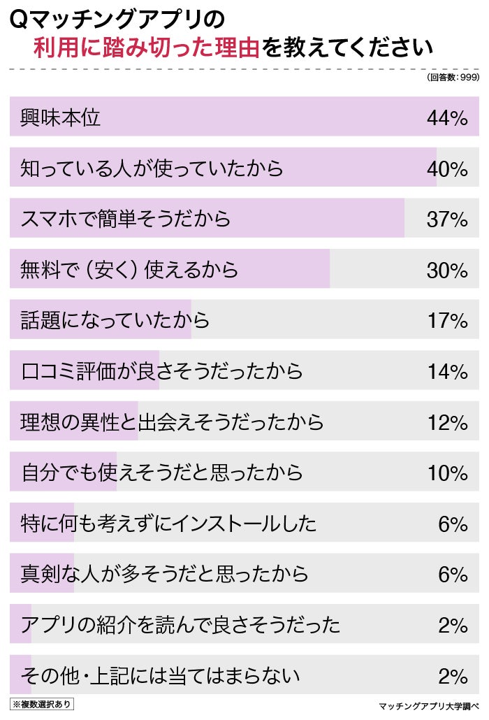 - マッチングアプリ利用のきっかけは興味本位がNo.1