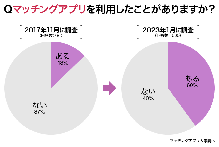 - マッチングアプリ「絶対に使わない」10分の1以下まで減少