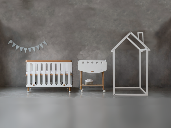 「赤ちゃんの頃の思い出を形に残してほしい」。そんな思いから生まれた10年ベッド。0歳から10歳まで、成長に合わせて形を変えながら長く使用できます。