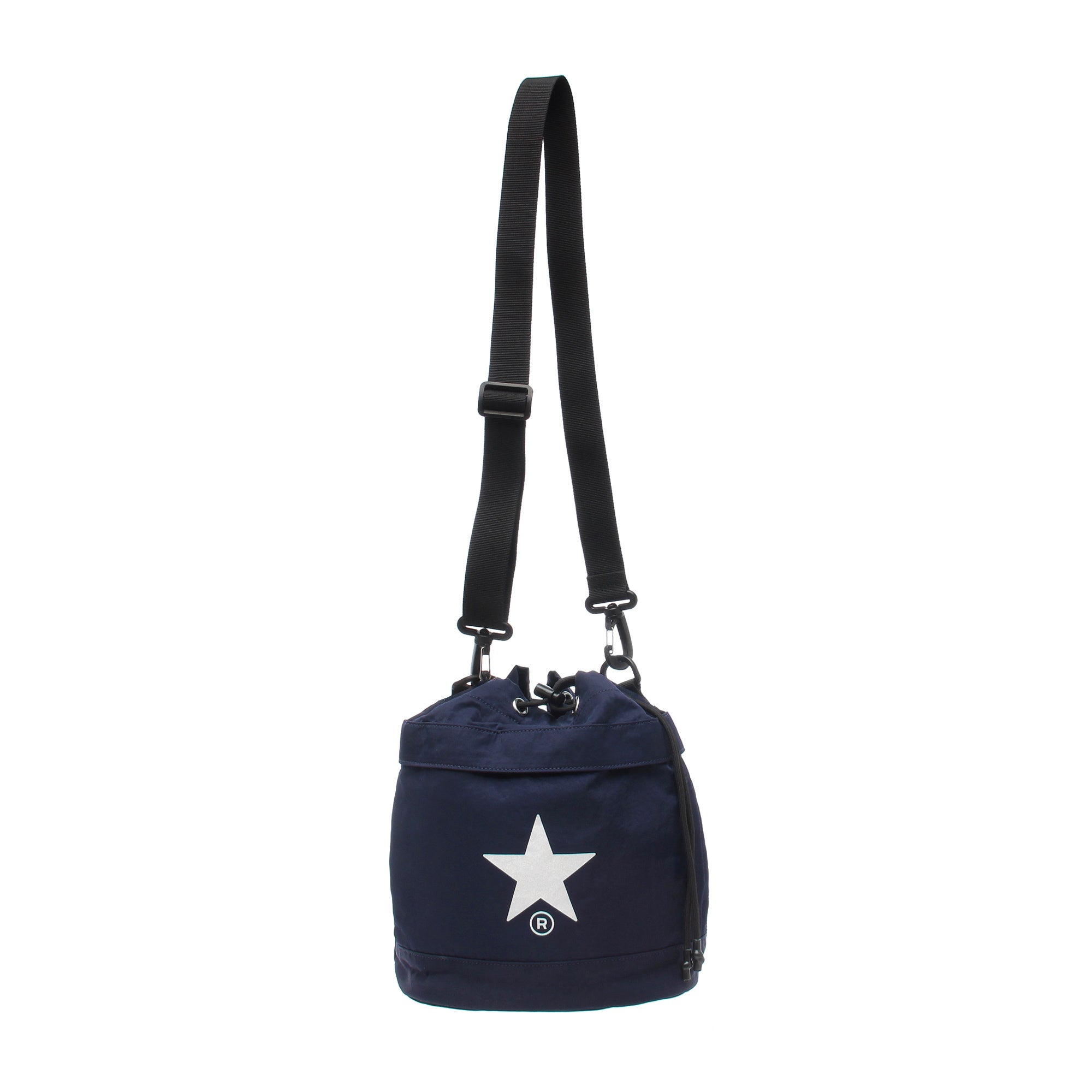 CONVERSE TOKYOで人気の巾着ショルダーバッグに、コラボレーション限定のカラーとデザインが登場します。夜空を思わせるネイビーと、ラテをイメージした柔らかなベージュの2色展開。軽やかなナイロン素材で、オールシーズン活躍するアイテムです。表面にはCONVERSE TOKYOを象徴する星のモチーフを大胆に、裏面にはリザーブロゴをあしらいました。サイドジップ付きの大きめの巾着型は、収納力も抜群でアウトドアシーンにもぴったりです。