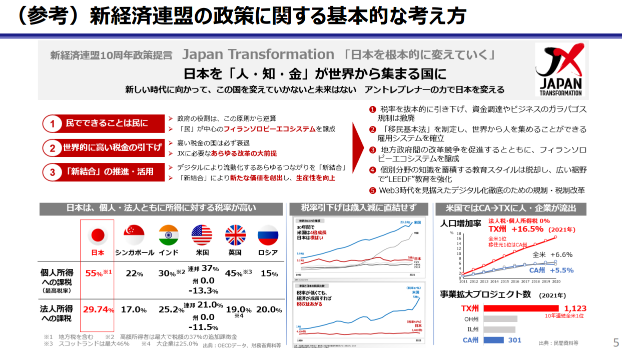 一般社団法人新経済連盟(所在地:東京都港区、代表理事:三木谷浩史)は、本日、2024年度税制改正提言を政府宛てに提出いたしました。提言の概要は以下の通りです。