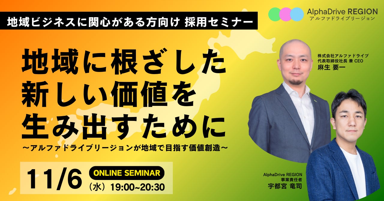 AlphaDrive REGION、日本各地で拠点立ち上げ責任者の募集スタート!11/6(水)にオンラインセミナーを開催