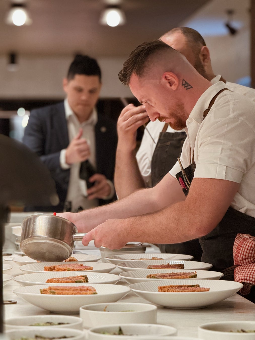 3つのレストランではいずれも、SAKE HUNDREDのフラッグシップシリーズである『百光 別誂(びゃっこう べつあつらえ)』『弐光(にこう)』、スパークリング日本酒の『白奏(はくそう)』がペアリングで提供されました。