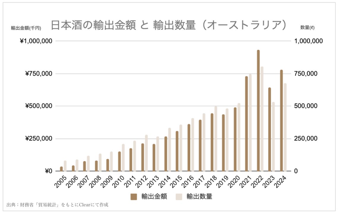 オーストラリアは2024年の日本酒輸出金額第8位の国で、ここ15年で輸出金額が4.4倍に伸長しています(*1)。また、ワインの消費国としても知られており、1人あたりのワイン消費量は世界第7位で、日本人の8倍以上を消費(*2)しており、日本酒と同じ醸造酒を楽しむ文化が日本以上に根付いています。