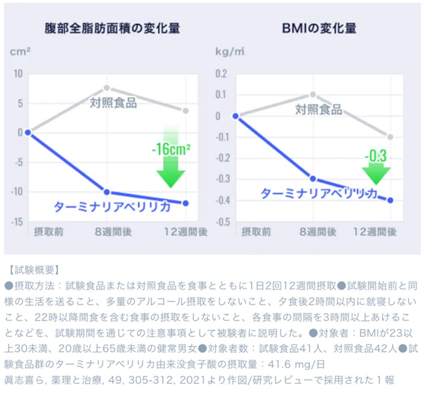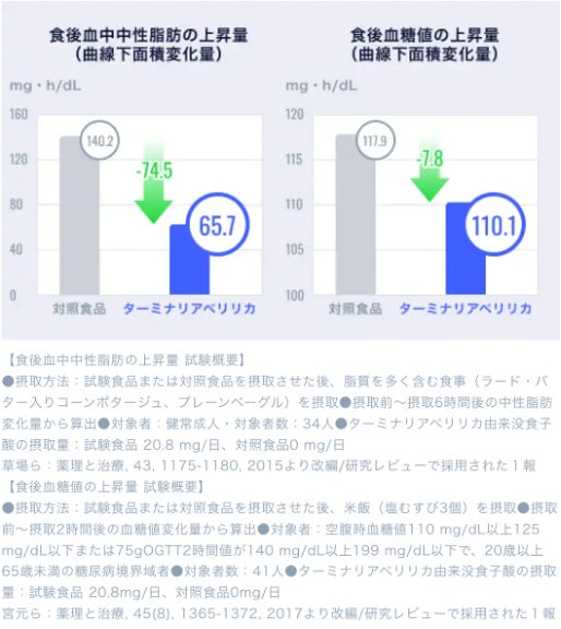 食事に含まれる脂肪・糖の吸収の抑制機能が報告されている「ターミナリアべリリカ由来没食子酸」と、血圧が高めの方の血圧の低下と一時的な精神的ストレスや疲労感を緩和する機能が報告されている「GABA」をダブルで配合した機能性表示食品。