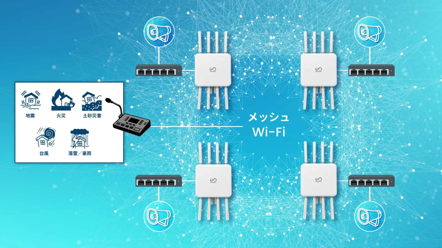 LANケーブルの敷設なしでIPスピーカーを配置し、必要な場所を迅速に「放送エリア」化します。