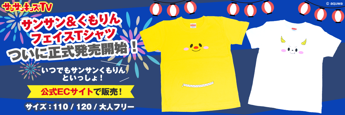 夏の新グッズ!サンサンキッズTVから「サンサン&くもりん フェイスTシャツ」が発売!<総再生数19億回のYouTubeチャンネル>