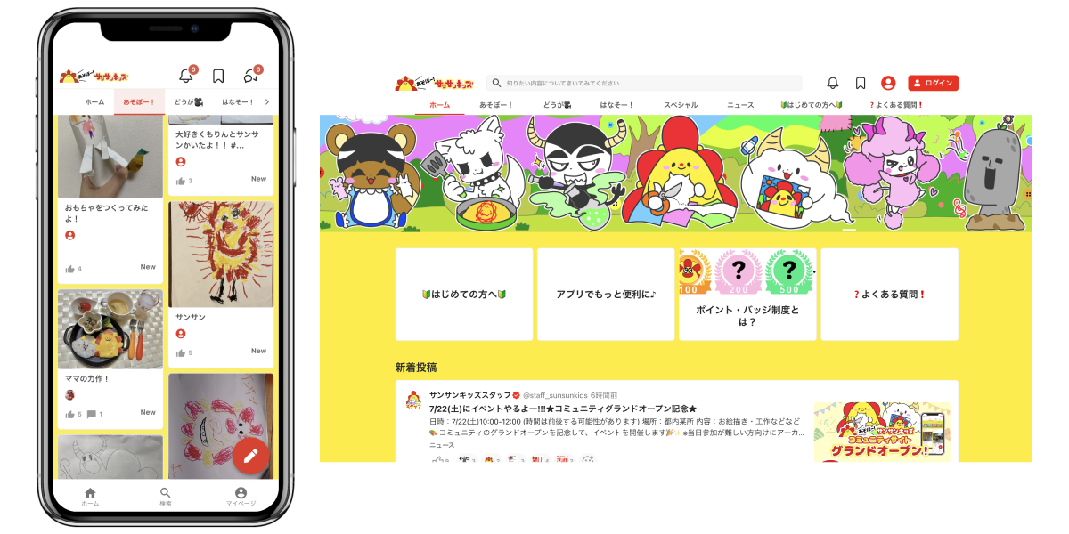 「あそぼー!サンサンキッズ」はお子様と保護者が遊びの可能性に気づき、実践し、創造しながら成長する楽しさに共感しあえるオンラインコミュニティです。YouTubeの枠に留まらず、コミュニティでも発信・交流をしていくことでよりワクワクした体験をすることができます。今後はYouTubeとの連動企画やファン同士・サンサンキッズの交流やイベントなど様々なコンテンツを発展させていく予定です。「あそぼー!サンサンキッズ」は無料でお楽しみいただけます。お気軽にご参加ください!