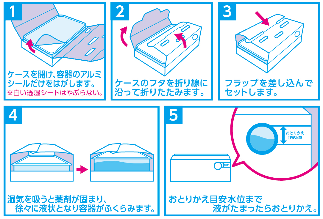 ●湿気を吸ってぐんぐん膨らむ超大容量の使い捨てタイプの湿気とりです。
