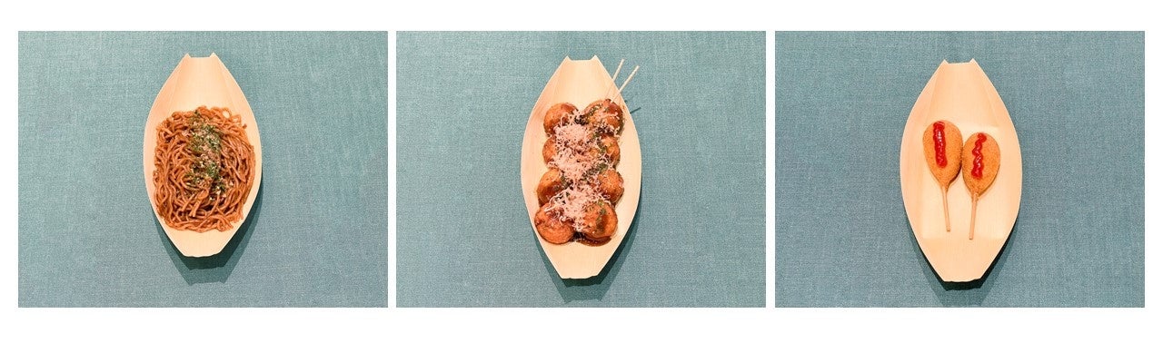 (左)焼きそば (中)たこ焼き (右)アメリカンドッグ