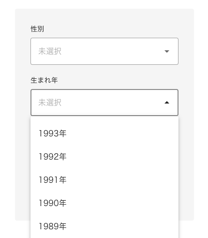 生まれた西暦を選択してください。※詳細な年齢は公開されません