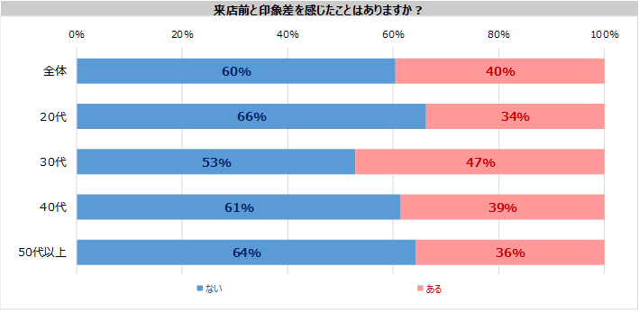5. 来店前との印象差を感じたのは40%、そのうち78%が悪印象で98%が再来店しない。