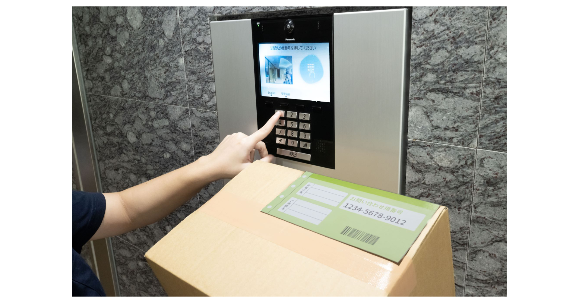 パナソニックの集合マンション向けインターホン設置物件にて、宅配事業者の配達員が組合せ番号をインターホンに入力することで、オートロックを解錠できる機能です。本機能を利用することで、宅配事業者は配送管理システムの開発・改修コストなど必要なく専有部玄関前への配達が可能になります。なお、本取り組みは宅配事業者やサービス事業者を対象に、オートロックの集合玄関機を安心・安全に解錠できる仕組みを提供することで、セキュリティを担保しながら利便性を向上するものです。