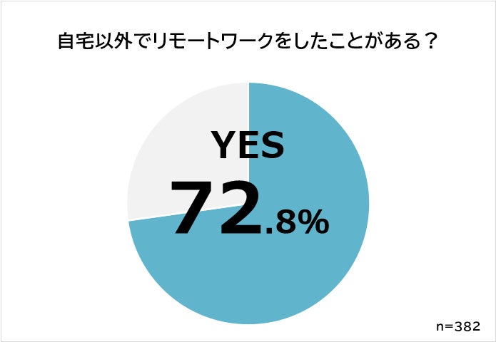 リモートワーク経験者382人にアンケートを実施したところ、自宅以外でのリモートワーク経験がある人は72.8%でした。