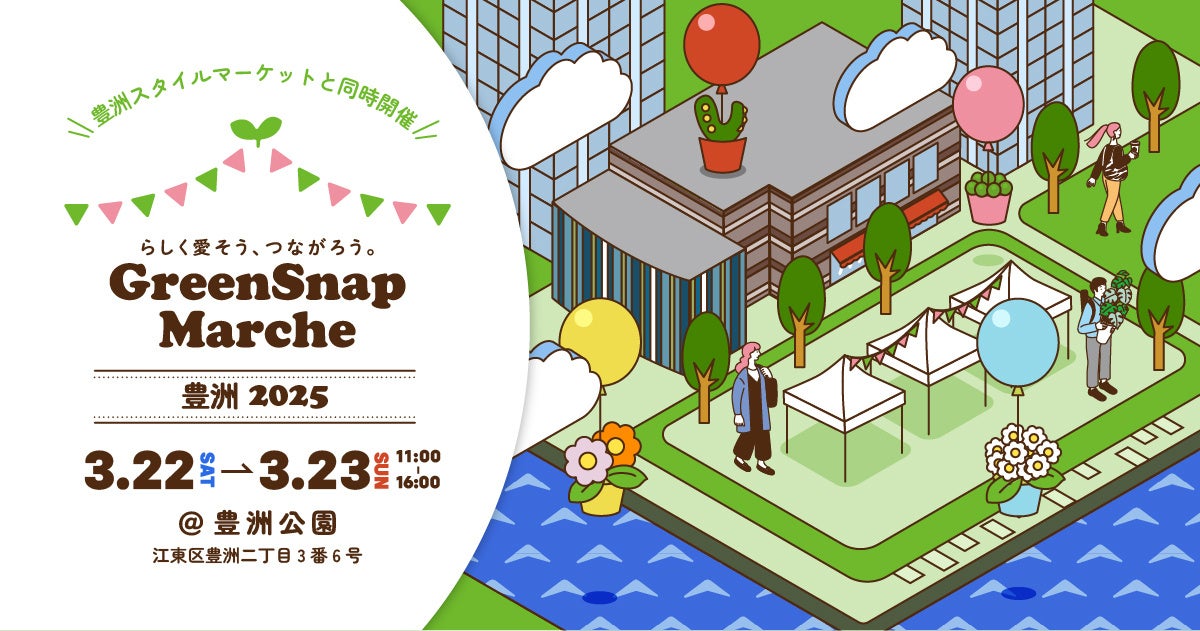 植物コミュニティアプリ「GreenSnap」を運営するGreenSnap株式会社(本社:東京都中央区、代表取締役:西田貴一)は、『GreenSnap Marche 豊洲 2025』を2025年3月22日(土)・23日(日)に豊洲で開催いたします。