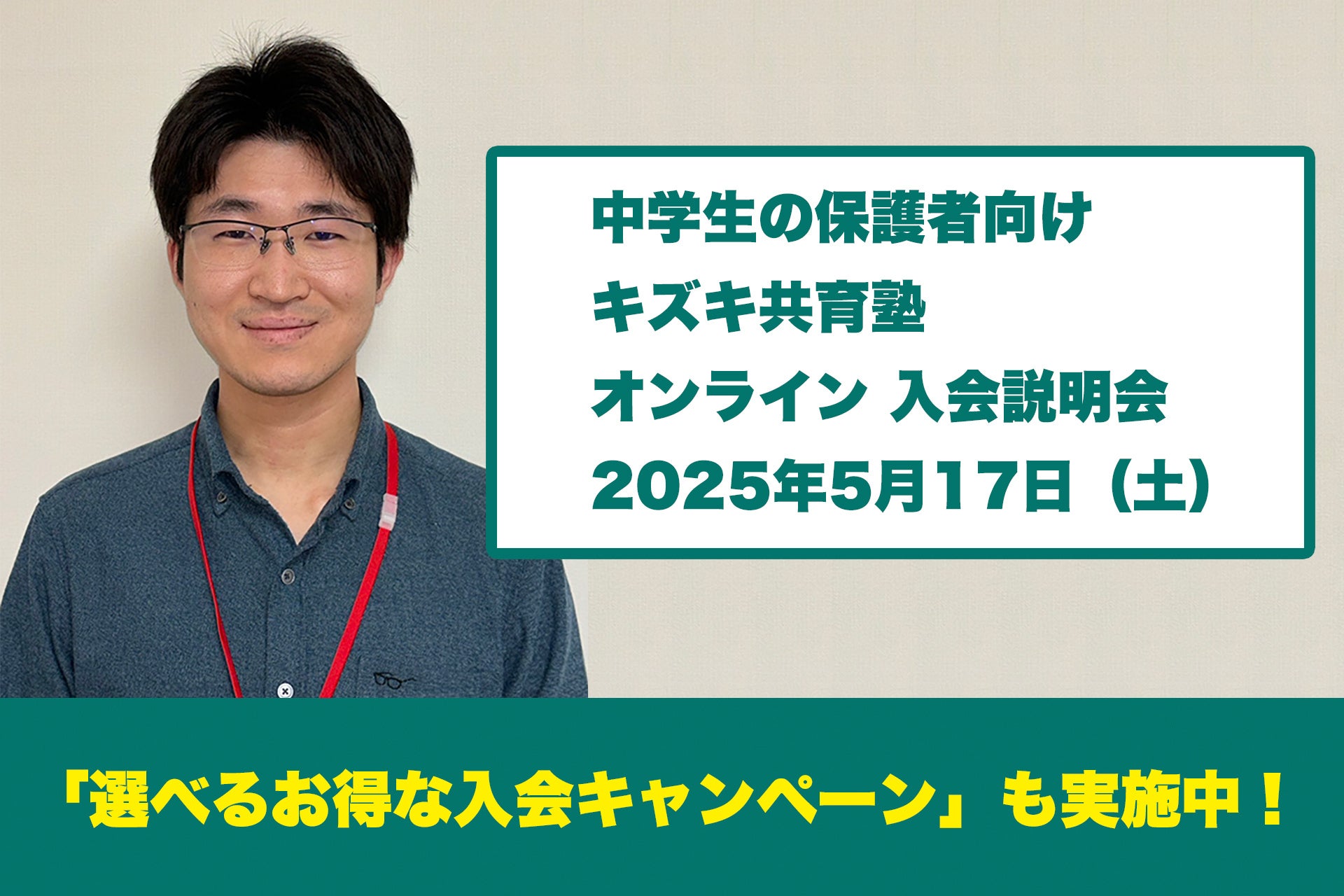 2025年5月17日(土)11時〜11時30分、そんな「キズキ共育塾」が中学生のお子さんがいる保護者さま向けに「無料オンライン説明会」を開催します!