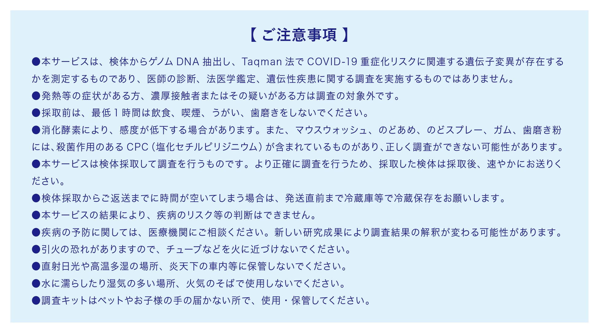 【感染症の重症化リスクに関連するといわれる遺伝子変異の有無を把握】新型コロナウイルス重症化リスク関連遺伝子調査用検体採取キットを3,980円(税込)にて販売開始!