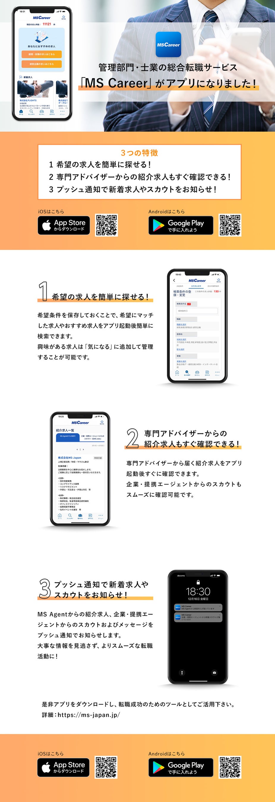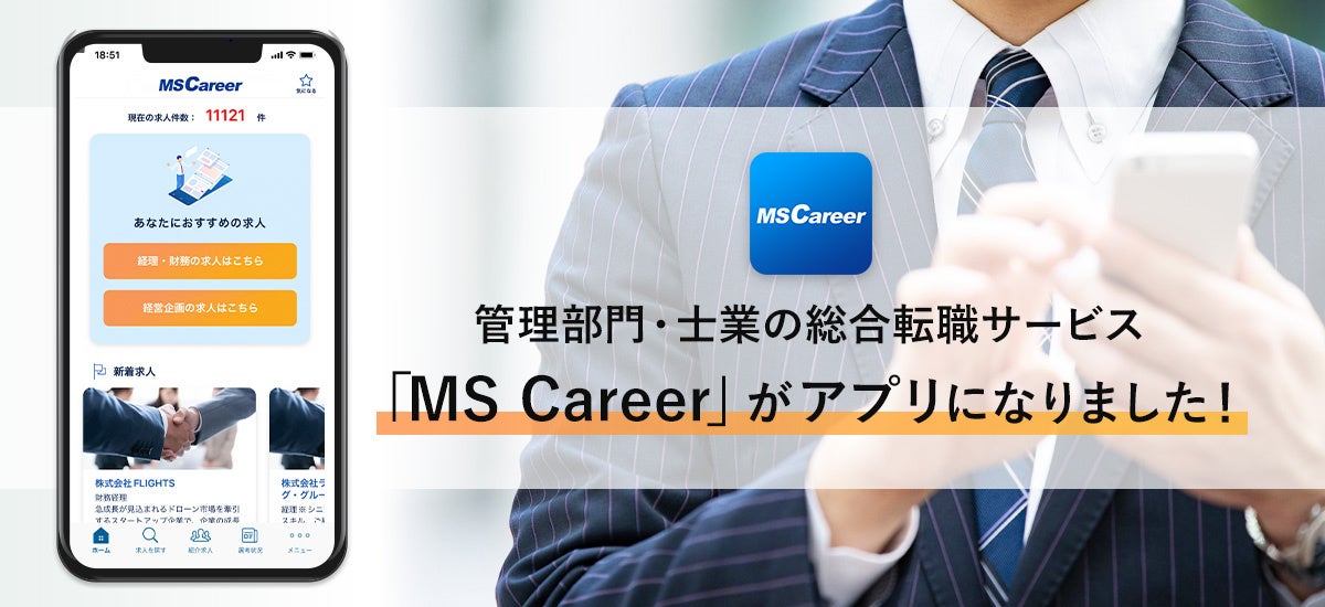 株式会社 MS-Japan(本社:東京都千代田区 代表取締役社長:有本隆浩/以下 MS-Japan 証券コード:6539)が 運営する管理部門と士業の総合転職サービス「MS Career」がアプリをリリース致しましたことをお知らせします。