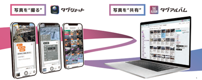 「タグショット/タグアルバム」は、撮影するだけでクラウド上に写真や動画などのデータを自動で保存・分類・共有するサービスです。また膨大な写真を活用できるため、それらを使用した書類作成に関わる手間を省くことができます。現場で撮影される多種多様な写真に状態や場所・品質など、現場に関連する情報を管理者があらかじめタグとして用意することで品質管理や安全管理に活用できます。